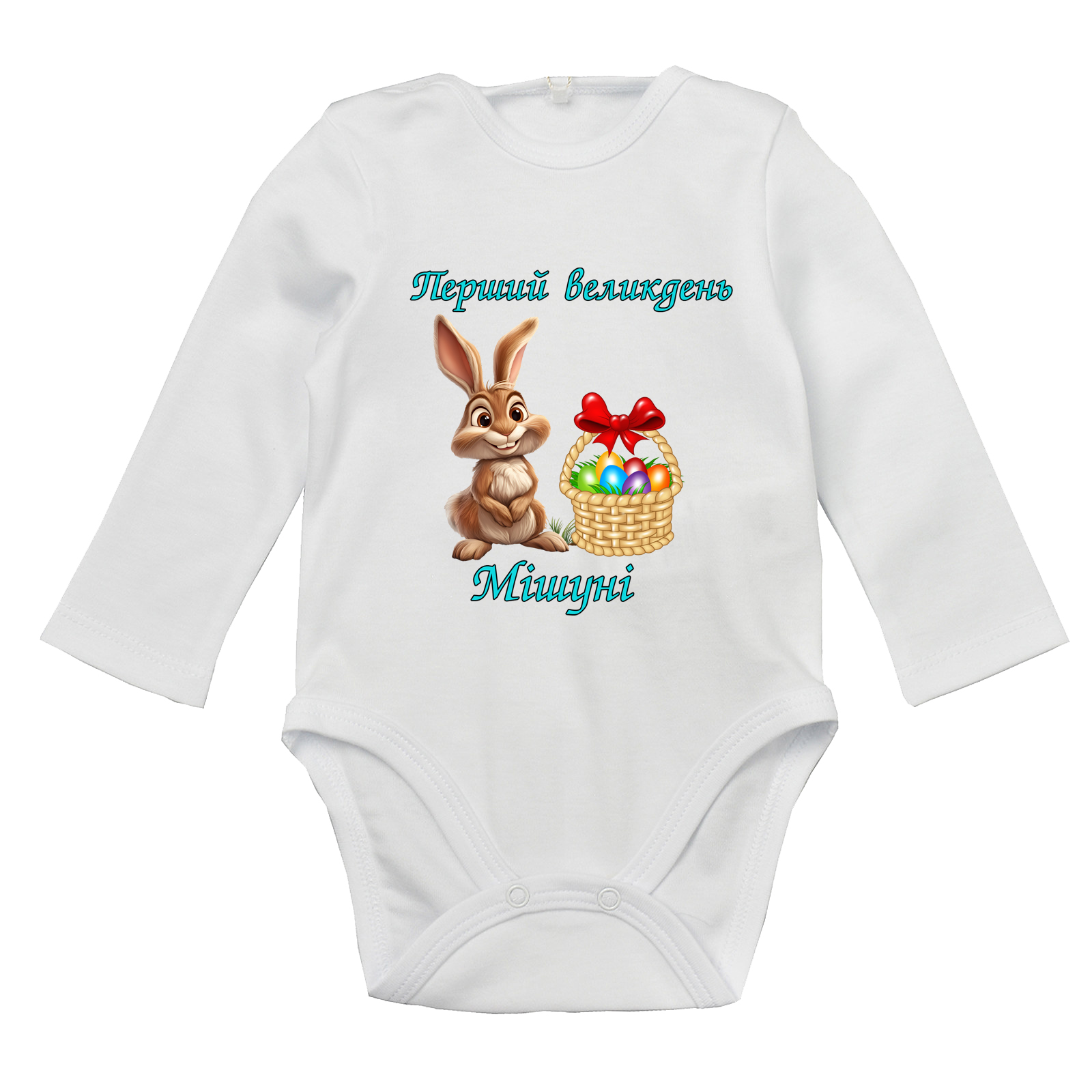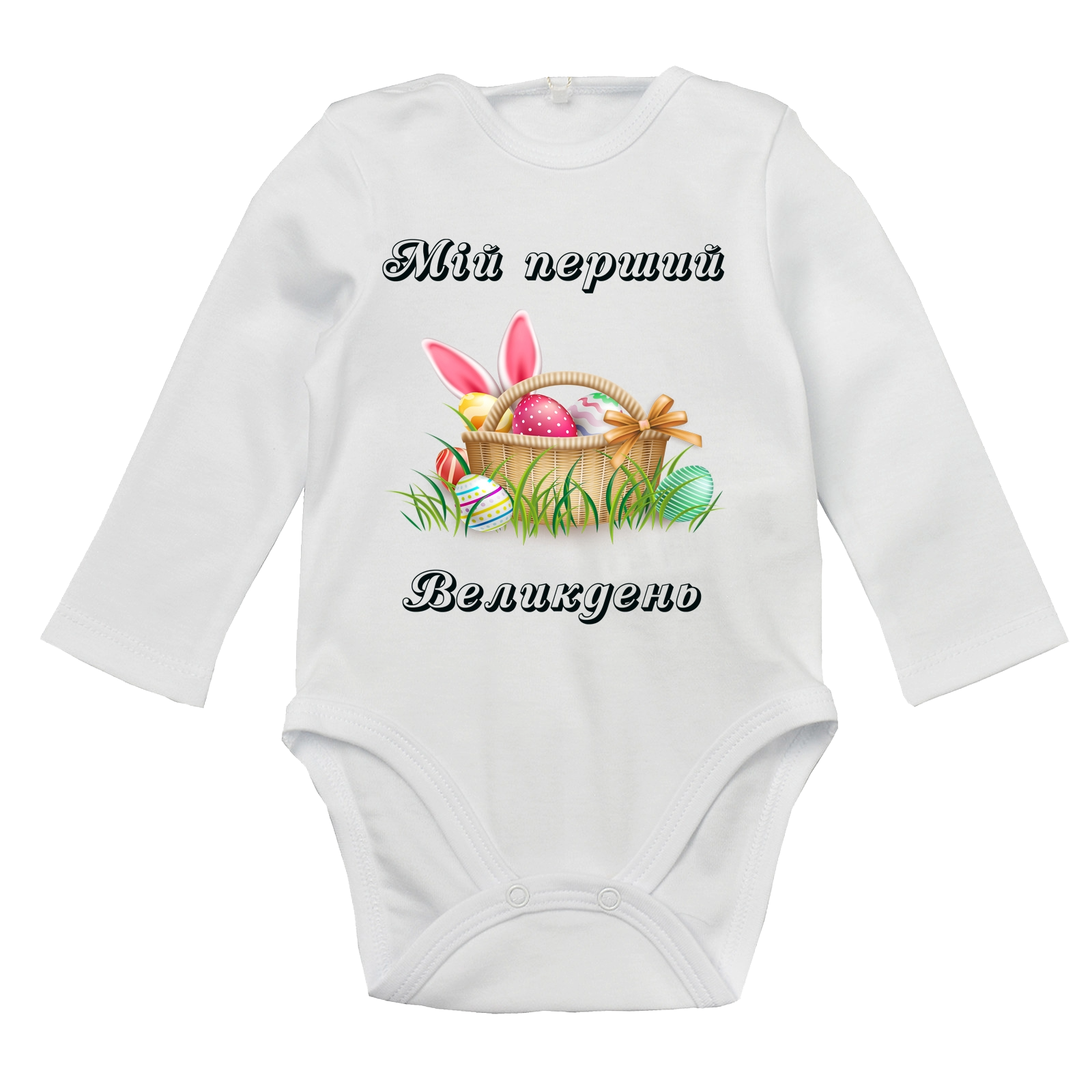 Малюк у святковому бодіку з написом «Мій перший Великдень» виглядає як головна паска на столі: милий, яскравий, зворушливий. А що головне — комфортно й безпечно одягнений.