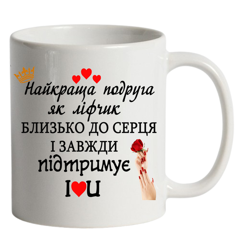 У світі, де все штучне й «для картинки», ця чашка біла “Для найкращої подруги” виглядає чесно. Вона про справжні емоції, не відфотошоплені фільтри й не куплені посмішки. Про дружбу, де можна сваритися, миритися і все одно разом планувати наступну каву.
