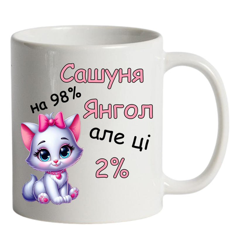 Ми всі знаємо таких людей: зовні вони справжні янголи — уважні, турботливі, привітні. Але іноді прослизають ті самі “2%”, які додають перчинки. І в цьому вся сіль! Саме тому чашка з таким написом стає ідеальним презентом для людини, яка вміє сміятися з себе й цінує гумор у дрібницях.
