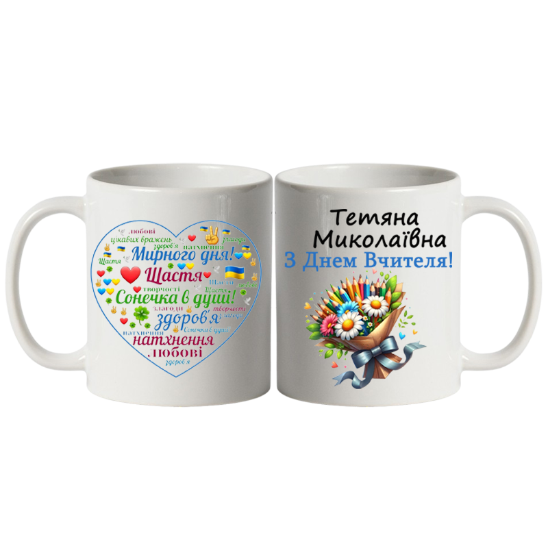 У більшості випадків подарунки для педагогів перетворюються на класичний набір: квіти, солодощі, листівка. Проблема лише в тому, що квіти в’януть, шоколад швидко зникає, а листівки осідають у шухляді. А от чашка біла “З днем вчителя” залишається актуальною довгі роки.