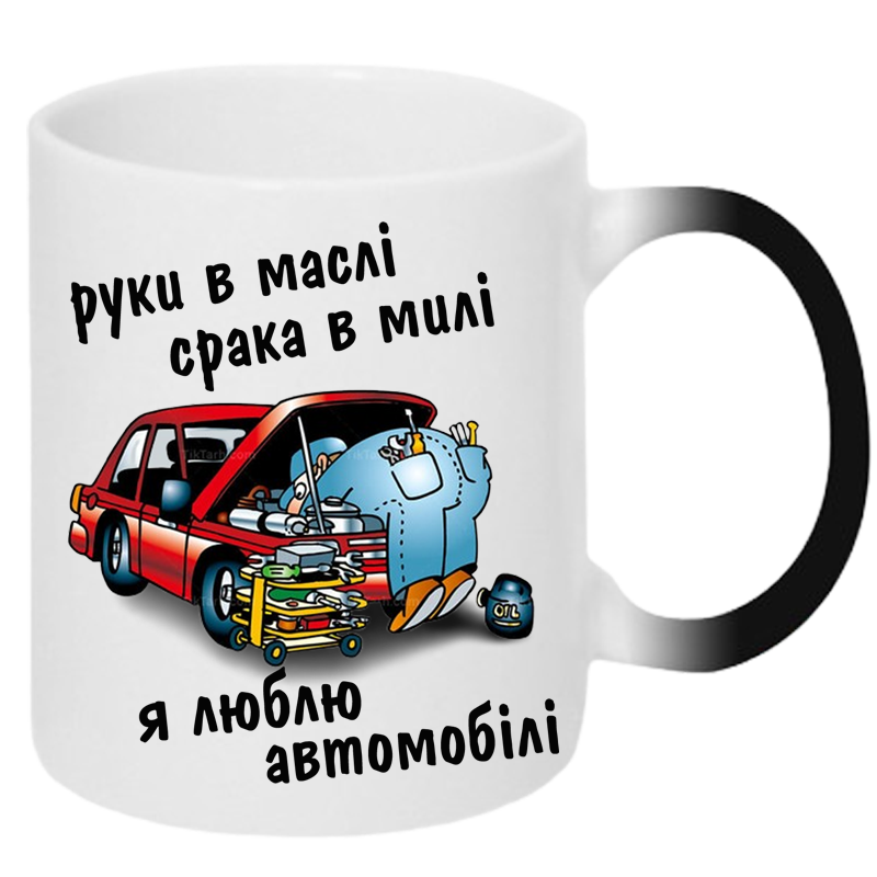 Чашка хамелеон “Руки в маслі срака в милі я люблю автомобілі