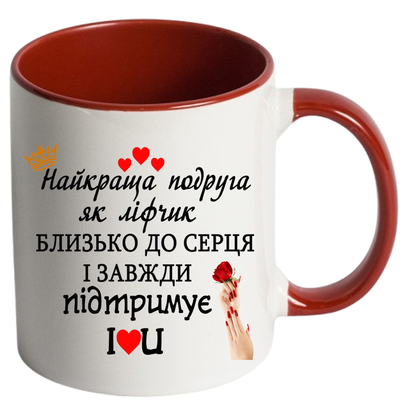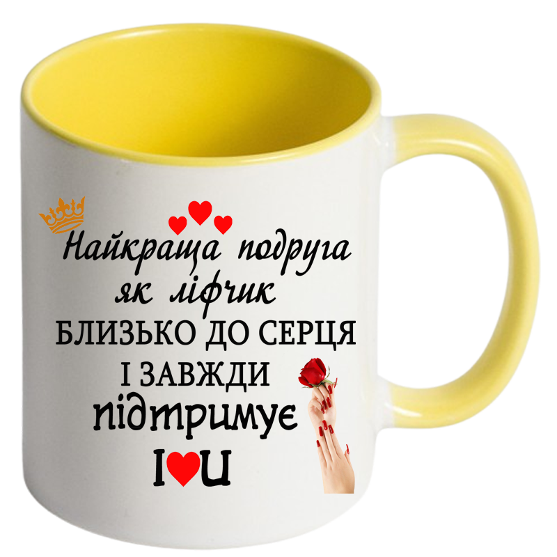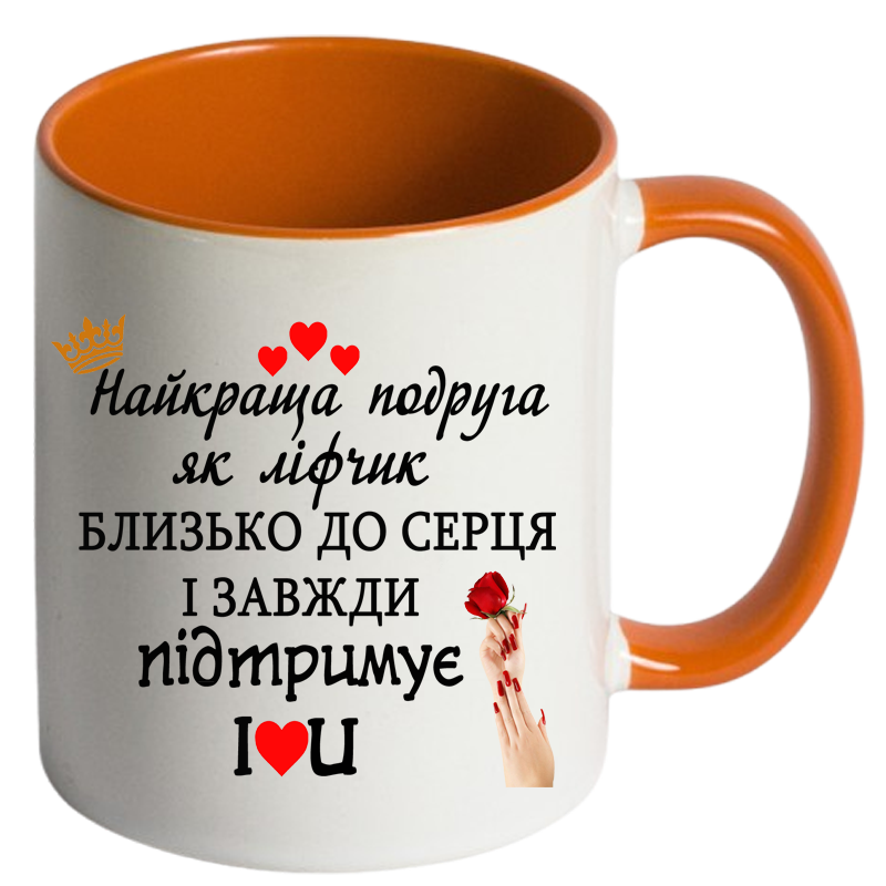 Чашка кольорова “Для найкращої подруги” створена для тих, хто цінує гумор та стиль одночасно. Цей виріб підкреслює індивідуальність та хороший смак власниці. А ще, це чудовий спосіб додати фарб у щоденну рутину. Кружка для подруги легко стане центральним елементом на робочому столі або на кухні, нагадуючи про ваші спільні жарти та секрети.