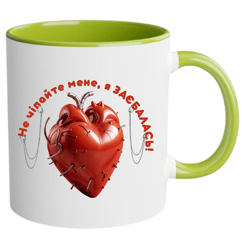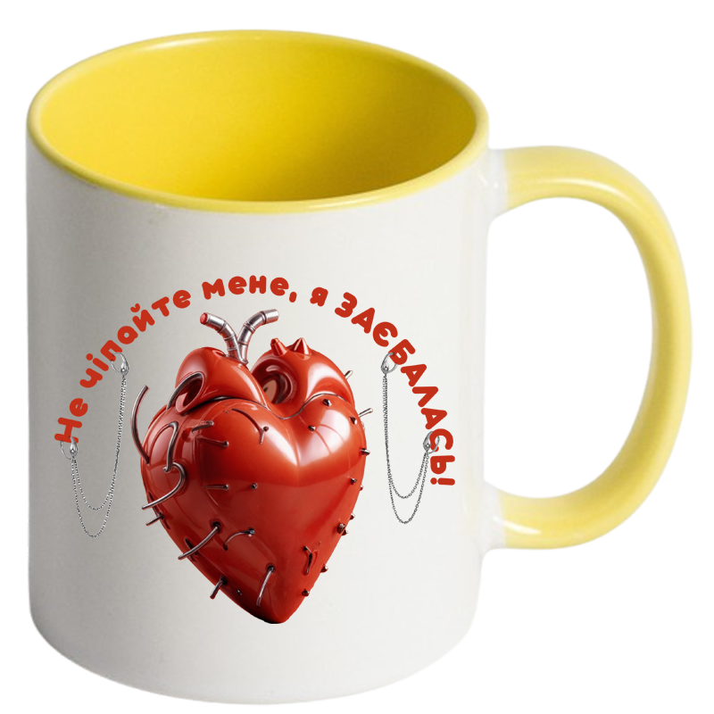 Колірна палітра робить її ще більш індивідуальною: яскравий внутрішній колір та контрастний напис створюють ефектний візуальний акцент на будь-якому столі. Виготовлена з міцної кераміки, чашка витримує щоденне використання, а написи залишаються чіткими після багатьох циклів миття. Вона поєднує в собі практичність і стиль, підкреслюючи твій характер та почуття гумору.