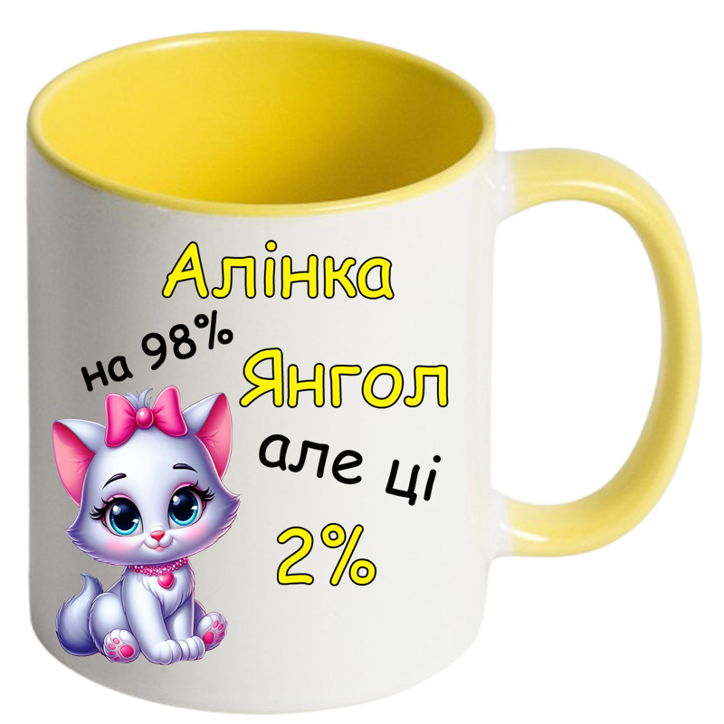 Отже, якщо ви шукаєте подарунок, який підходить для будь-якої компанії й завжди викликає позитивні емоції, ця кольорова іменна чашка стане ідеальним вибором. Вона дарує настрій, створює маленькі щоденні ритуали й доводить: навіть янголи мають право на свої 2%.