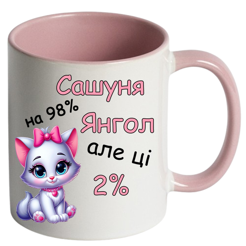 Чашка кольорова “Сашуня на 98% янгол, але ці 2%”