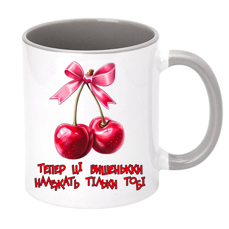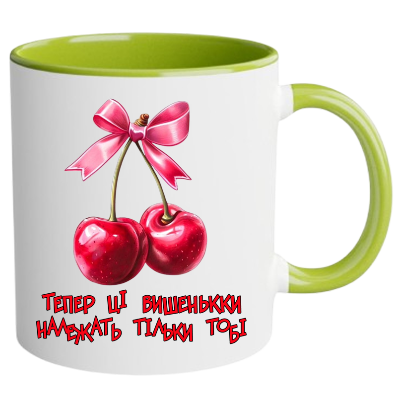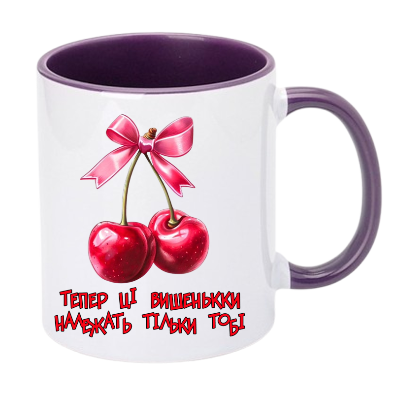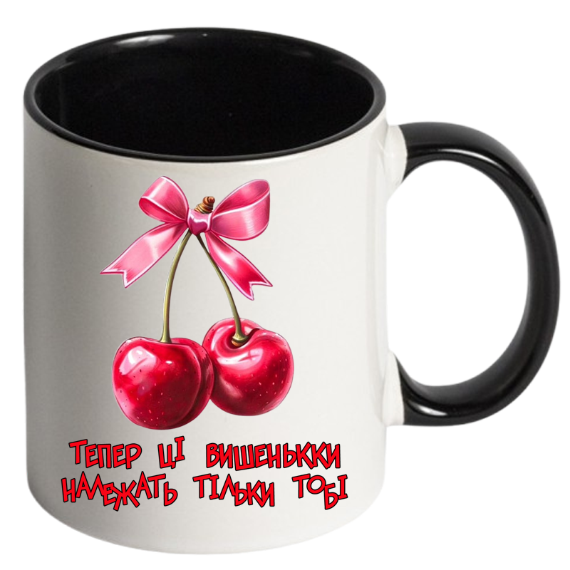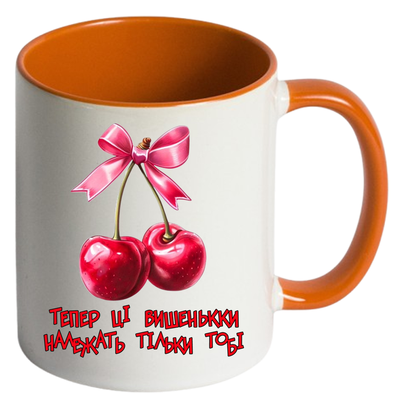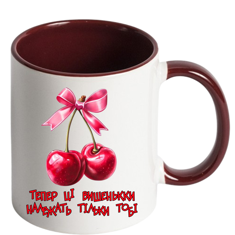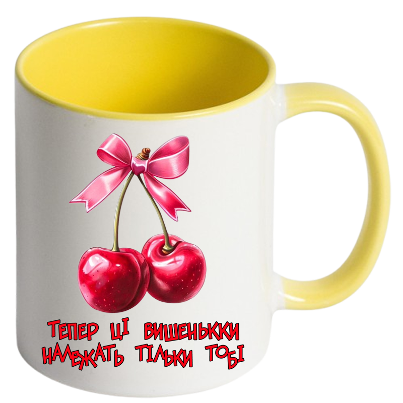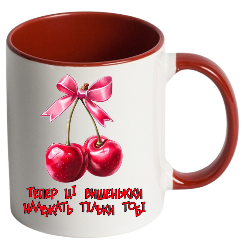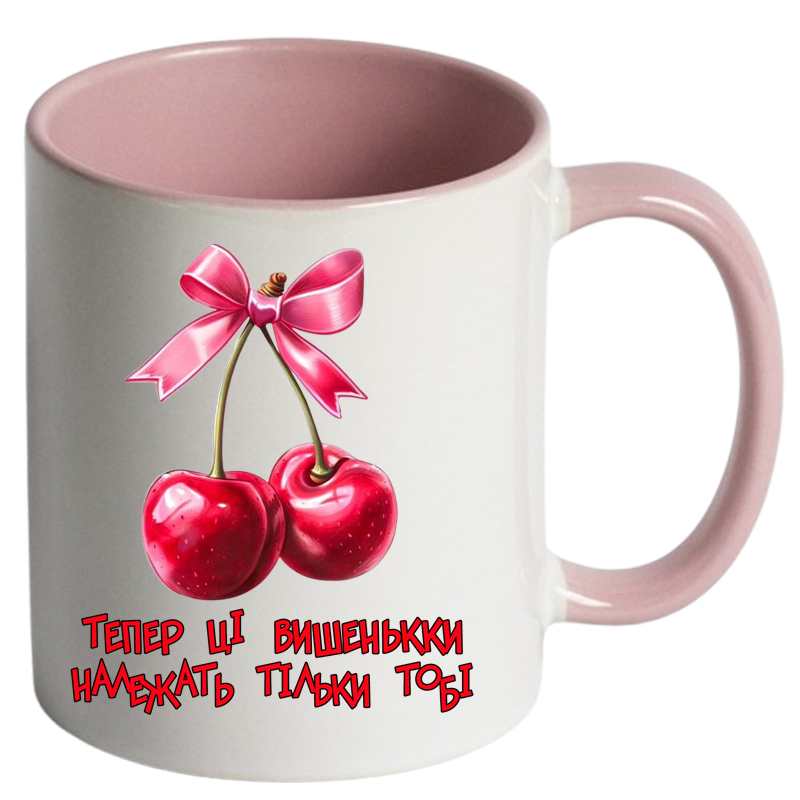 Чашка кольорова “Тепер ці вишеньки належать тільки тобі” – подарунок із підтекстом