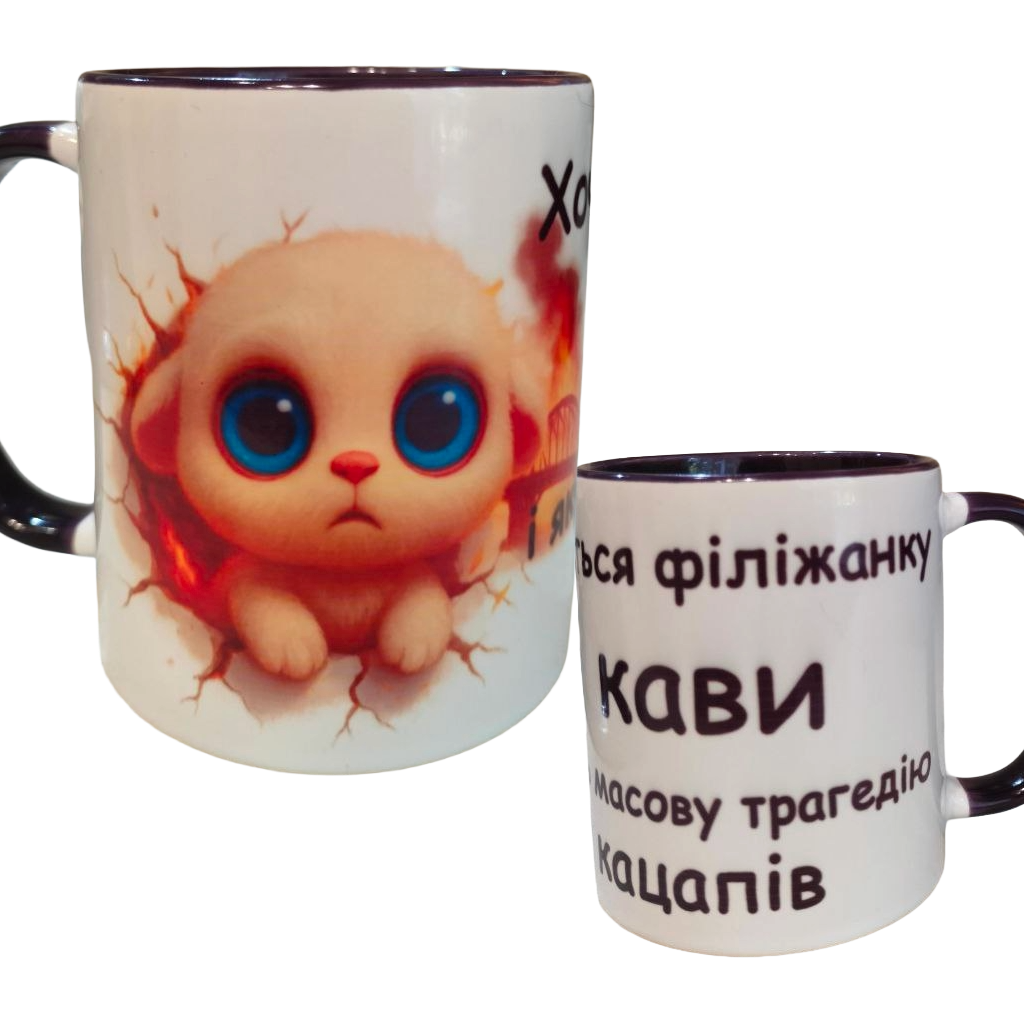 Кольори залишаються яскравими навіть після десятків миттів, а сама чашка витримує щоденне використання. Це не просто сувенір — це це спосіб сказати: «Я бачу реальність і мені не страшно з неї сміятися».