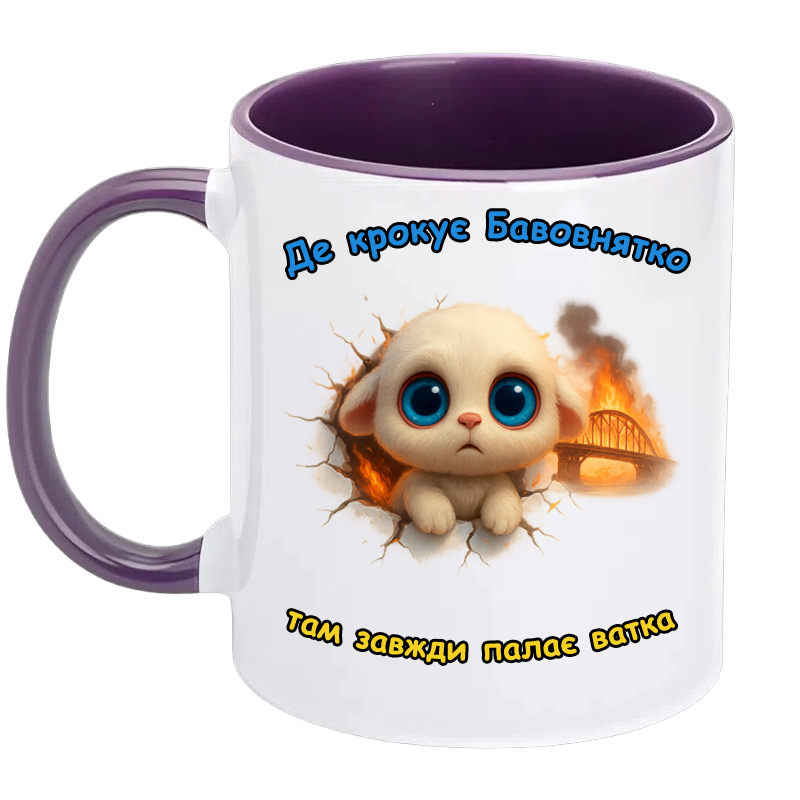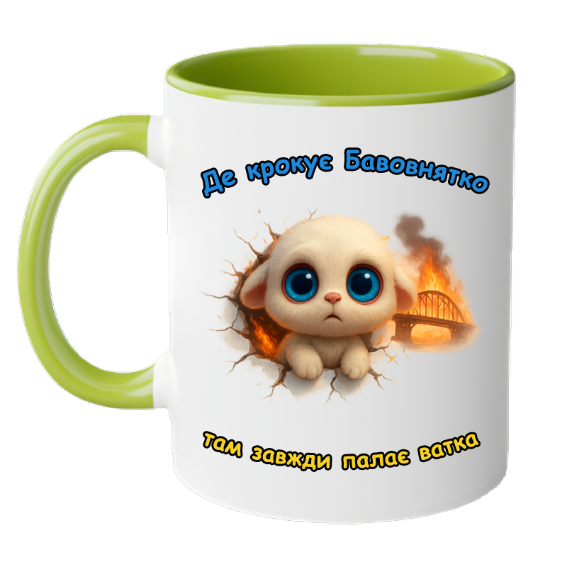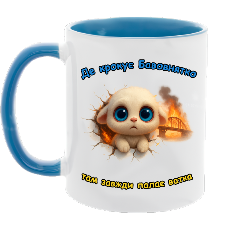 Звичайні чашки створені для звичайних чаю чи кави. А чашка з Бавовнятком — для тих, хто любить настрій із перцем і сарказмом. На ній — наш новий міфічний герой, пухнасте й миле Бавовнятко. Воно не просто миле: воно з вогником! У прямому сенсі. Адже де крокує Бавовнятко — там завжди палає ватка, а десь на горизонті вже димить кримський міст.