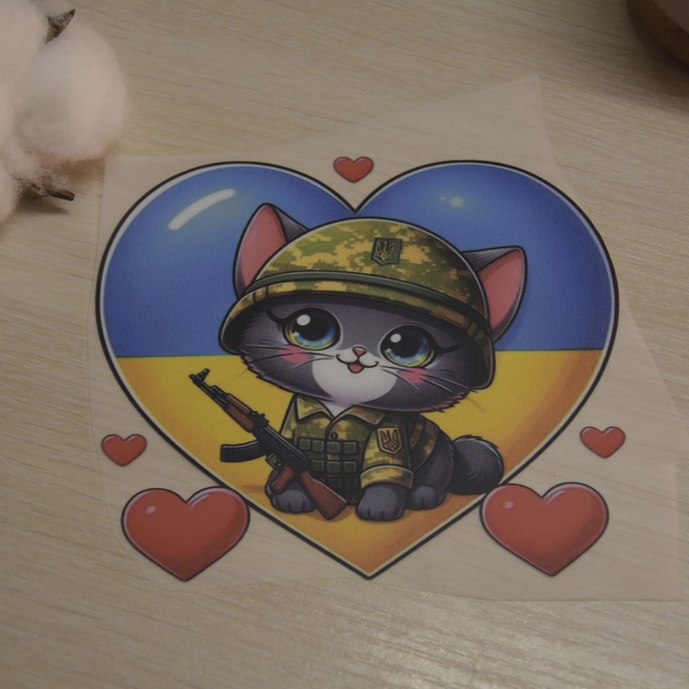 DTF наклейка “Котик ЗСУ” як виразний елемент стилю