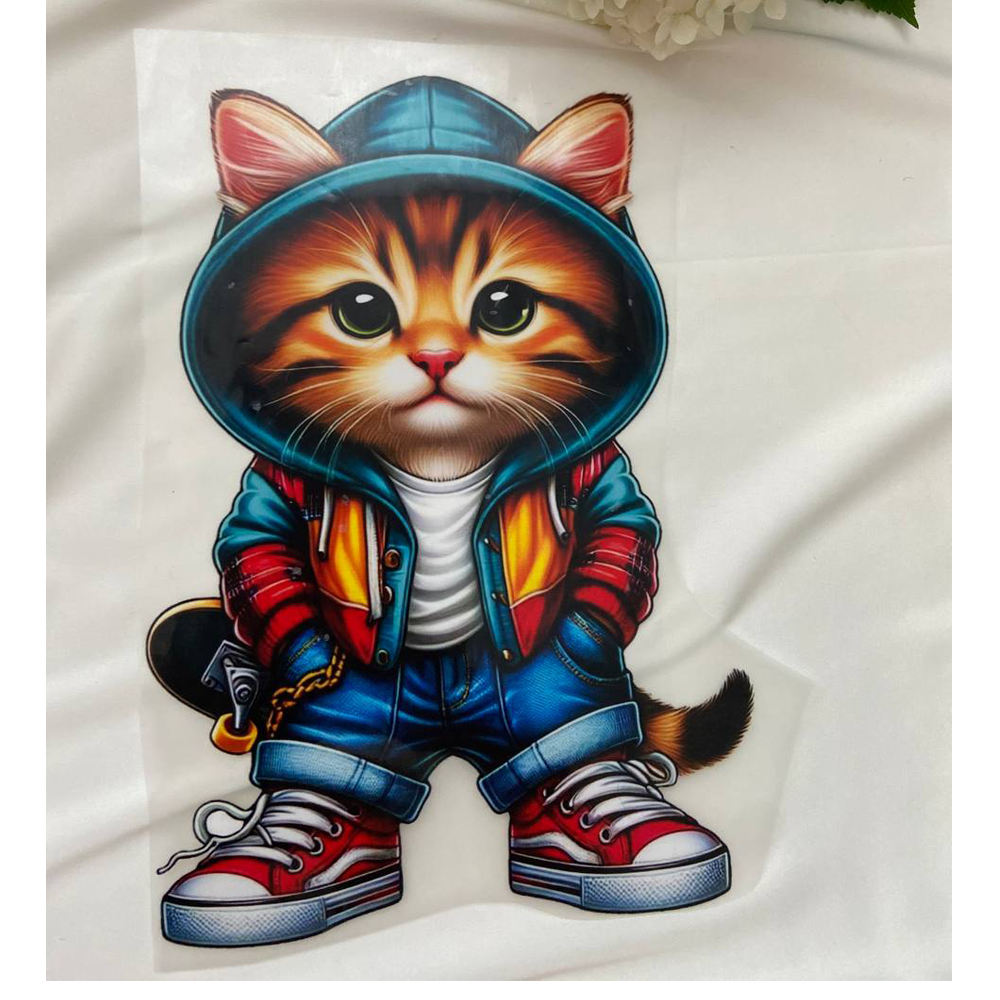 DTF наклейка на одяг “Кіт-скейтер” як стильний акцент