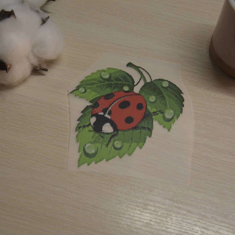 Наклейка не створює жорсткості в зоні нанесення, що забезпечує комфорт під час носіння. Формат підходить як для індивідуальної персоналізації, так і для невеликих серій одягу або аксесуарів. Перенесення здійснюється за допомогою термопресу, що гарантує довговічність і стабільність результату.