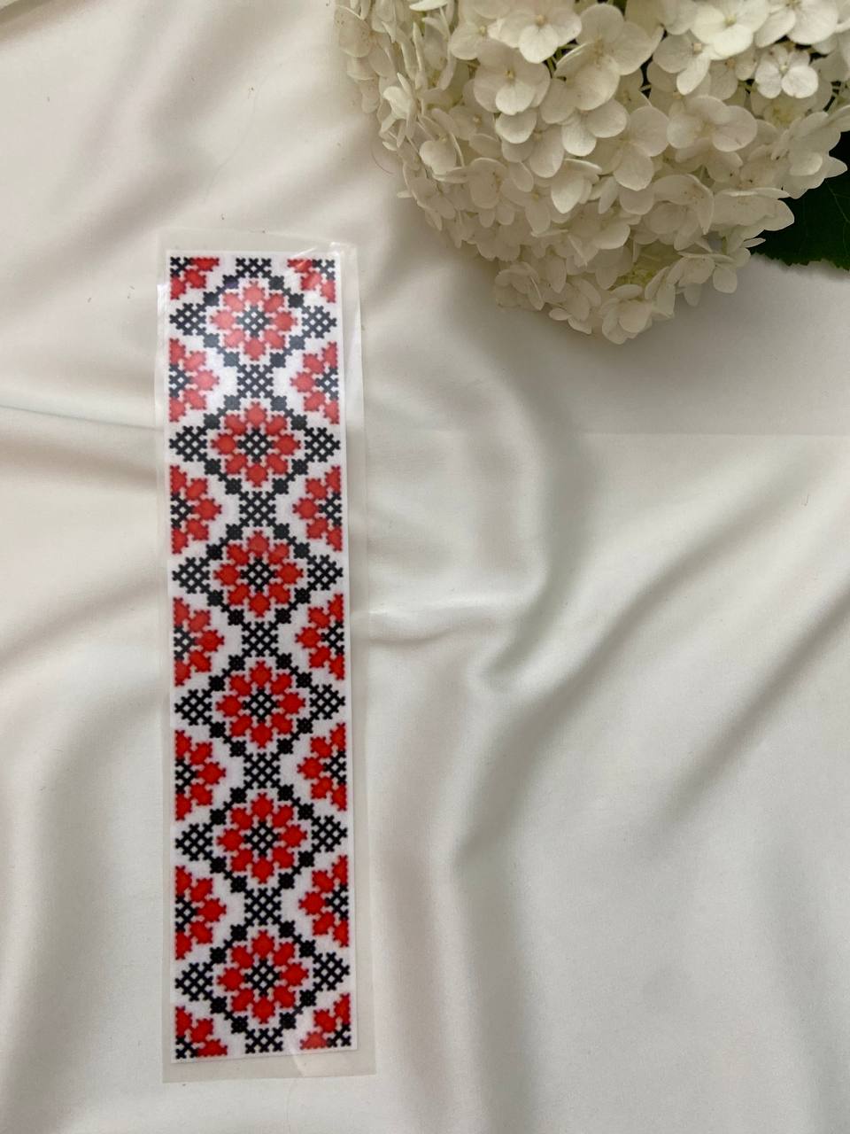 ДТФ наліпка “Український орнамент” з червоними квітами – яскравий акцент для вашого стилю