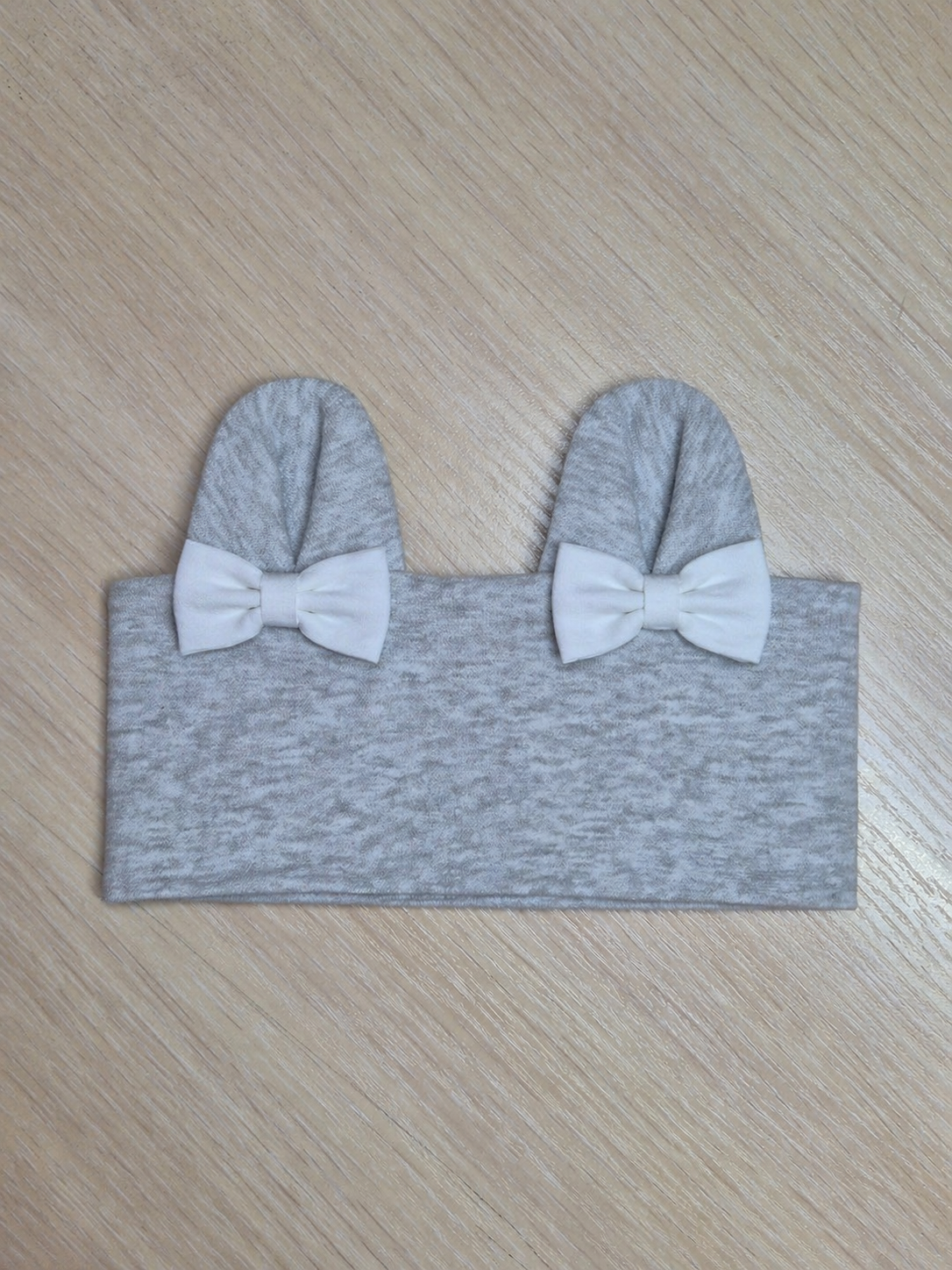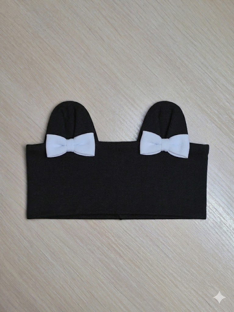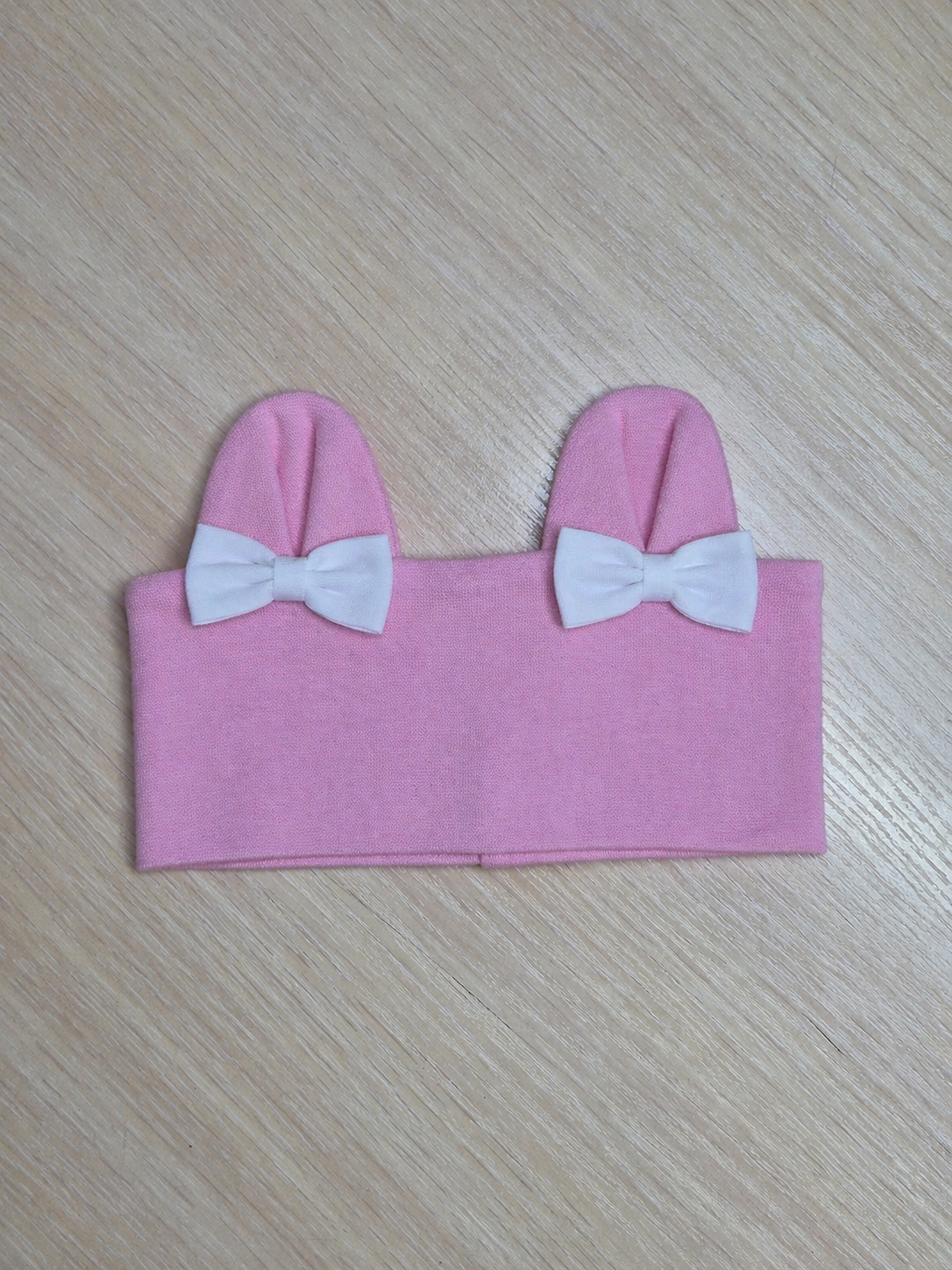 Вушка додають образу грайливості. Вони акуратні, тримають форму і виглядають дуже мило, не перетягуючи на себе всю увагу. Білий бантик на кожному вушку — це саме той акцент, який робить пов’язку ніжнішою і більш “дитячою” у хорошому сенсі.