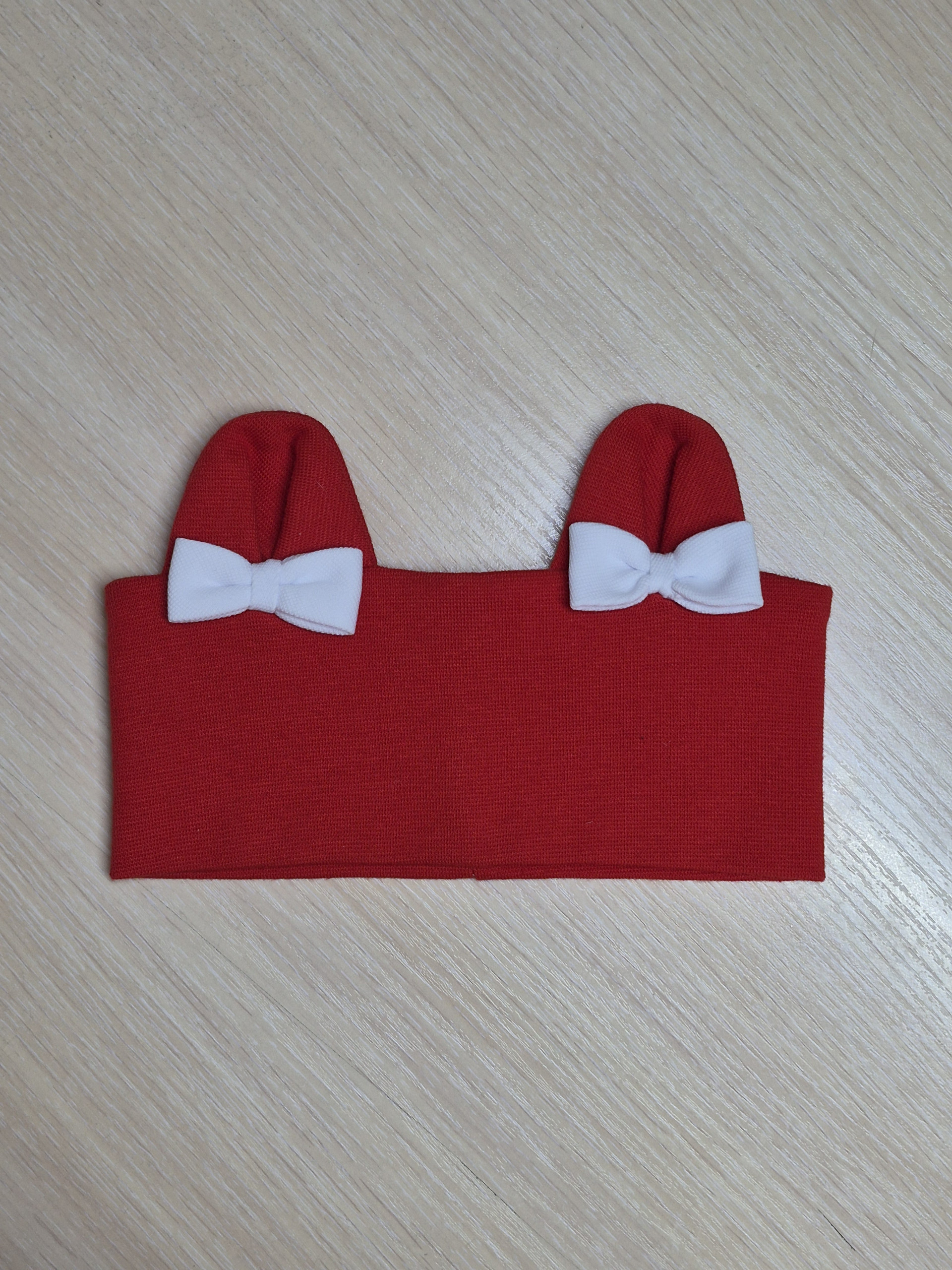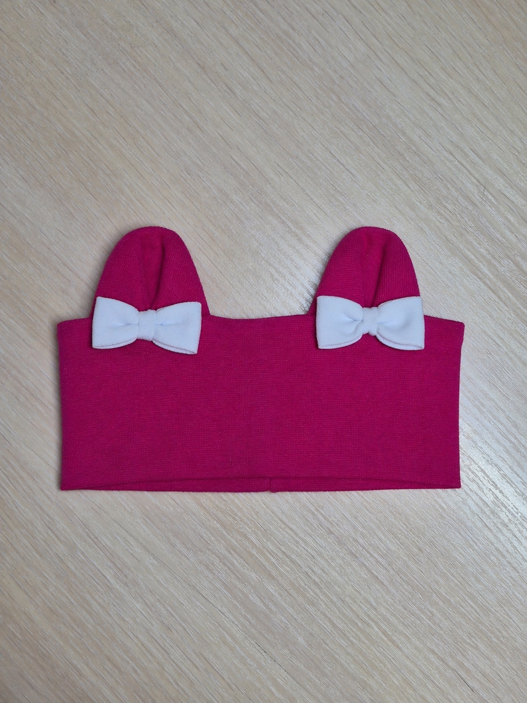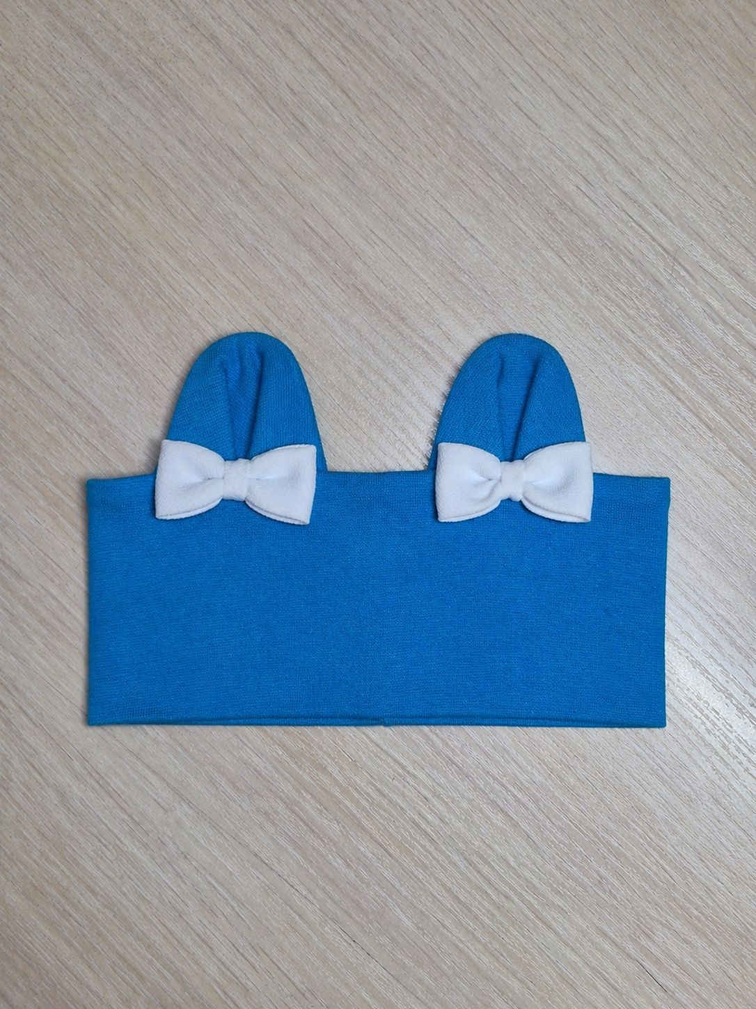 Вушка додають образу грайливості. Вони акуратні, тримають форму і виглядають дуже мило, не перетягуючи на себе всю увагу. Білий бантик на кожному вушку — це саме той акцент, який робить пов’язку ніжнішою і більш “дитячою” у хорошому сенсі.
