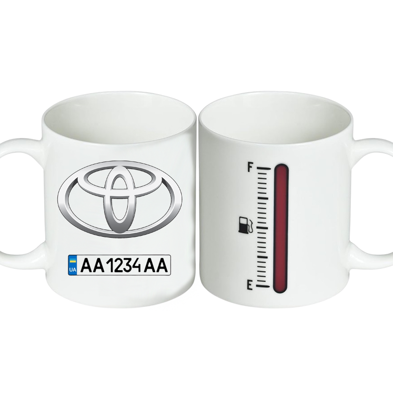 Кружка хамелеон “Тойота” Заправка — це не просто аксесуар. Це щоденний «тюнінг» твого ранку. І найприємніше — вона унікальна, адже номер твого автомобіля можна додати під замовлення.
