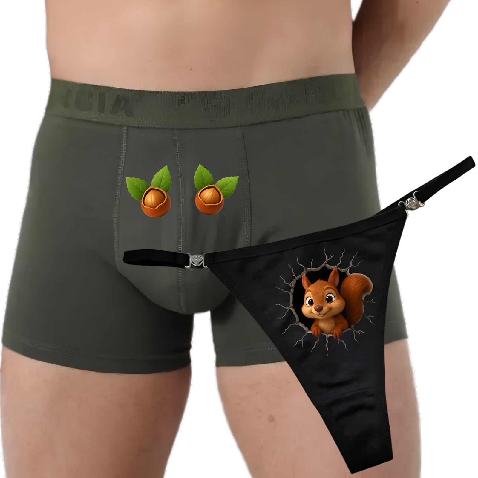 Парні труси з принтом “Білочка з горішками” — чудовий подарунок без пафосу: сюрприз для річниці, жартівливий презент «просто так» або перший крок до нової гри в двох. У будь-якому випадку вони працюють: і настрій підіймають, і любов підкреслюють. Бо справжня магія — це коли навіть білизна каже: “я млію від цих горішків”.