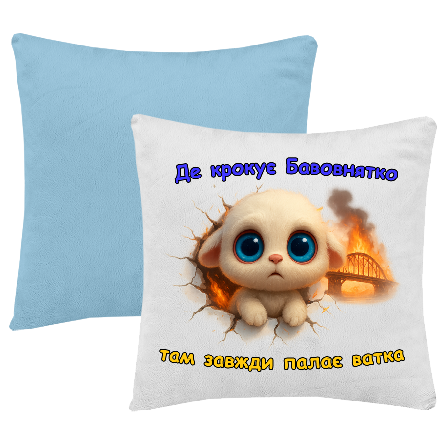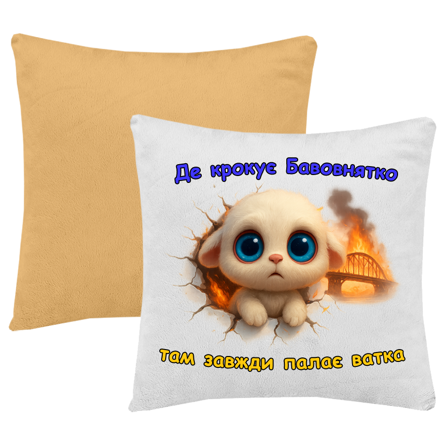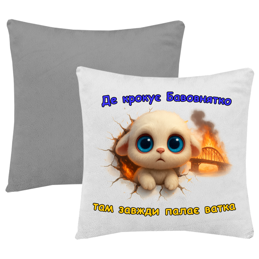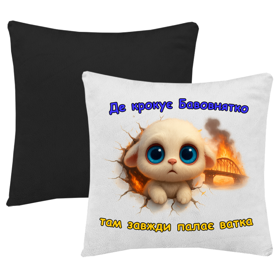 Подушка з Бавовнятком — це річ, що поєднує тепло дому й наш фірмовий український вайб. Вона одразу задає настрій: ніби хтось поруч тихенько підморгує і шепоче «тримайся, усе буде добре». У дизайні — добрий гумор, трішки іронії, і дуже впізнаваний символ, що для багатьох став талісманом внутрішньої стійкості.