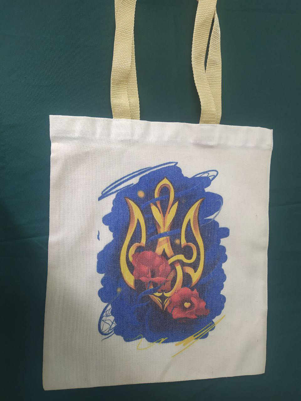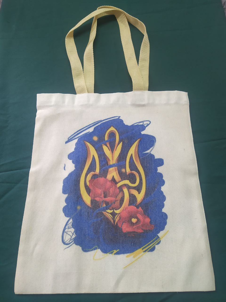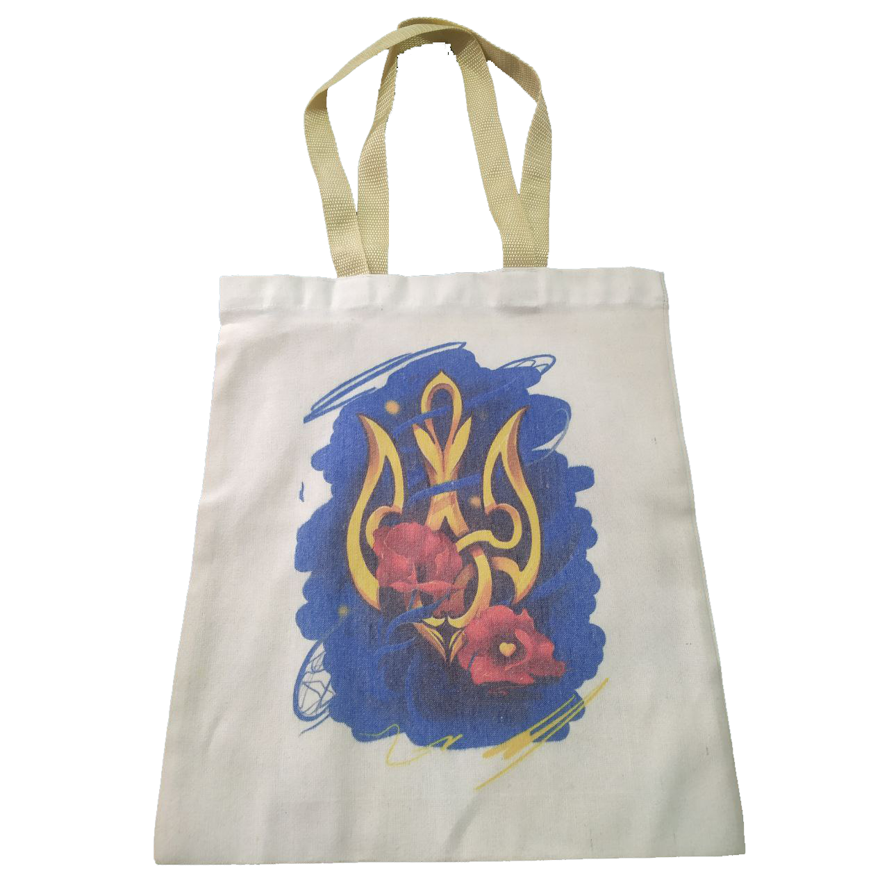 Ця сумка створена для тих, хто хоче не лише заявити про свою позицію, а й зробити це елегантно. Кольоровий тризуб у композиції з тюльпанами виглядає сучасно і не душить образ зайвим пафосом. Коли ти несеш цей шопер, він працює як маленький символ підтримки, що не потребує зайвих слів. Такий акцент підходить для прогулянок, для роботи чи для швидких покупок.
