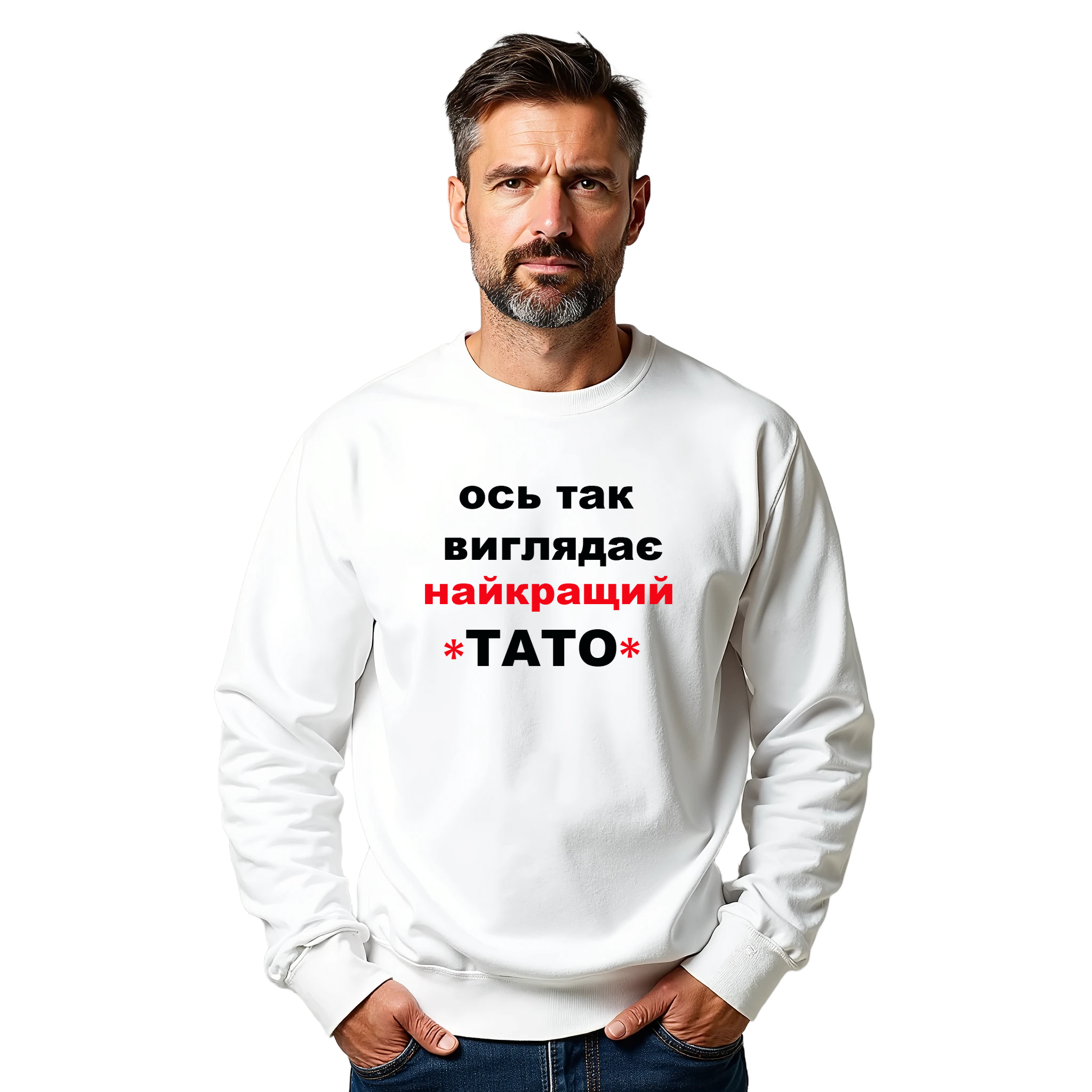 Цей світшот — не просто одяг, а доказ того, що в сім’ї є справжній герой. Подаруй його татові й побачиш, як він ходитиме гордий, немов виграв конкурс «Тато року». Замовляй світшот “Ось так виглядає найкращий тато” вже зараз і зроби свого тата найщасливішим (і найстильнішим) у світі.