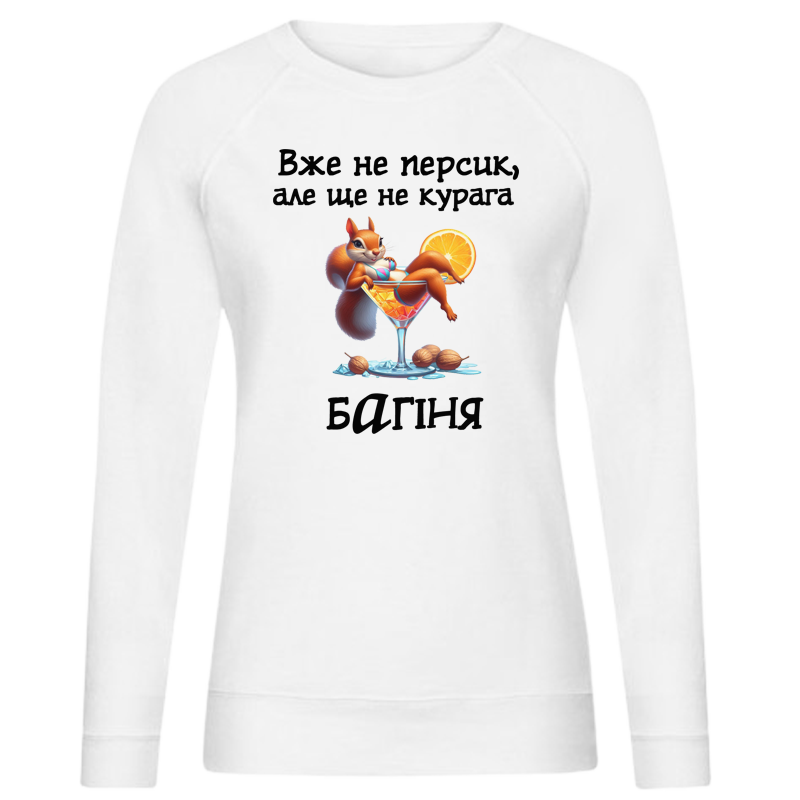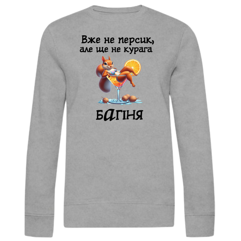 Цей світшот — відмінний подарунок для друзів із почуттям гумору або для себе, щоб нагадувати: життя — не марафон молодості, а мистецтво приймати себе з усмішкою. І якщо хтось спробує пожартувати над твоїм віком чи досвідом — просто покажи напис на грудях і підморгни. Бо, зрештою, ти вже не персик, але ще не курага, і це прекрасно.