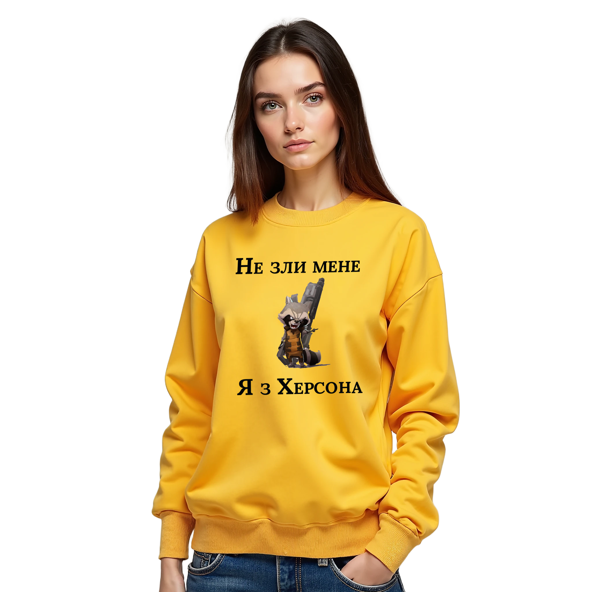 Жіночий світшот “Не зли мене я з Херсона” — це щось більше, ніж просто кофта. Це бойова форма цивільного часу. Це ваш настрій, голос і частинка рідного дому. Замовляйте просто зараз і носіть з гордістю!