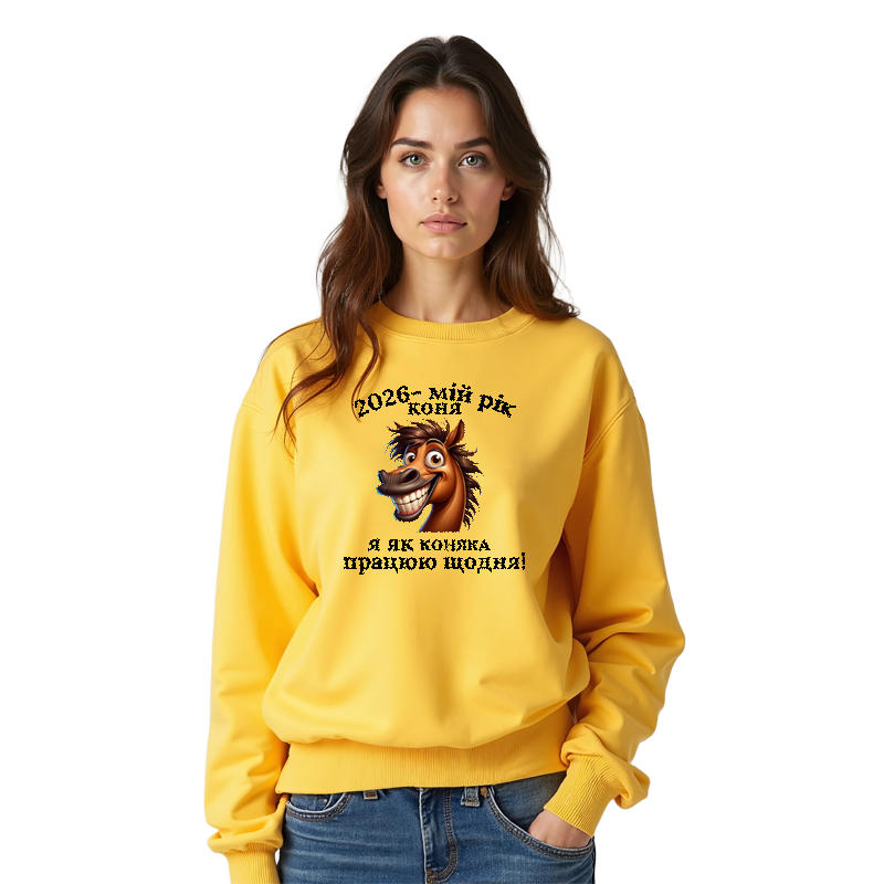 Ближче до кінця варто нагадати: Світшот Як коняка працюю щодня — це не просто річ у гардеробі, а спосіб голосно й чесно сказати про той щоденний марафон, який ми всі біжимо. У ньому зручно, тепло й достатньо смішно, щоб проживати навіть найскладніші будні з крихітною, але стійкою краплею оптимізму.