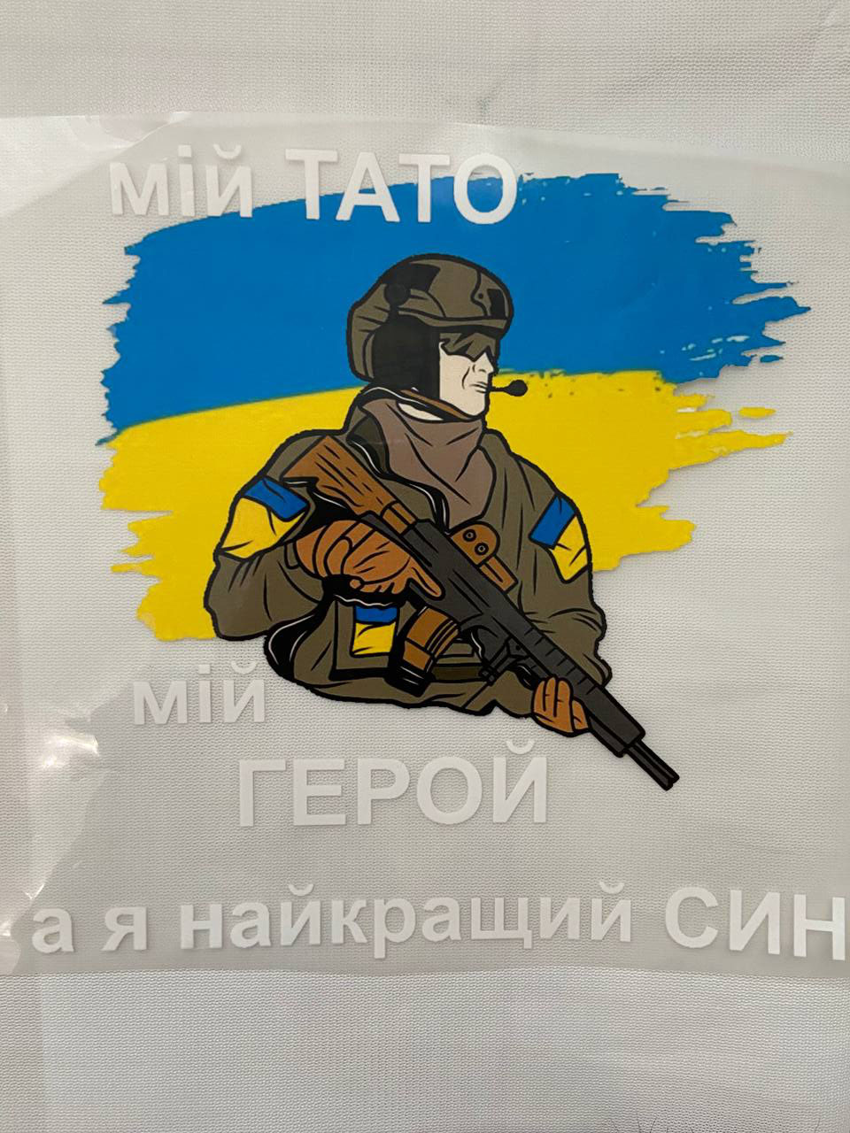 Коли хлопчик із гордістю говорить «мій тато — мій герой», це не просто слова. Це історія родини, у якій є честь, сила й добрий гумор. Термоналіпка створена саме для таких — хто не боїться показати свою вдячність, але робить це стильно. Вона чудово виглядає на чорному, білому або камуфляжному фоні, а головне — не змивається після прання, бо виготовлена з якісного термоматеріалу, який тримається міцніше, ніж обіцянки ворога “повернути Крим”.