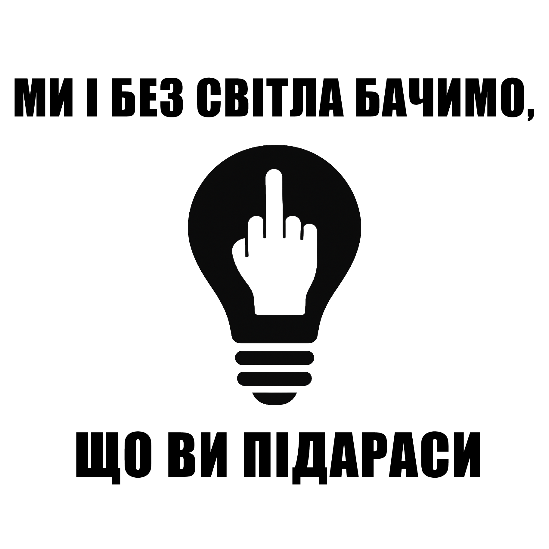 Вітаємо у світі, де відсутність електроенергії лише загострює відчуття прекрасного та здатність до ідентифікації міжнародних терористів. Наліпка з написом “Ми і без світла бачимо що ви підараси” — це твій особистий сертифікат адекватності. Поки за поребриком плекають ілюзії, що ми будемо плакати в темряві, ми клеїмо цей вініл на генератори та автівки, щоб кожен зальотний хробак здалеку бачив, що його тут чекають з «теплим» прийомом. Це не просто наклейка, це елемент психологічного тиску на залишки логіки ворога, якщо вони там взагалі колись були.